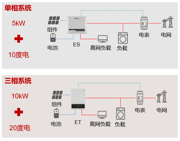 推薦系統(tǒng)配置 單相儲(chǔ)能系統(tǒng):5kW+10kWh 三相儲(chǔ)能系統(tǒng):10kW+10~20kWh