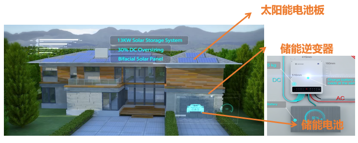 目前國(guó)內(nèi)儲(chǔ)能主要還是應(yīng)用于一些后備、示范、別墅項(xiàng)目上。 插入鏈接 ![]() 03、如何配置一套家用儲(chǔ)能 插入鏈接 ![]() 在戶用儲(chǔ)能系統(tǒng)當(dāng)中,主要的組成部分就是組件、儲(chǔ)能機(jī)、電池;上圖這種形式就是將儲(chǔ)能設(shè)置在車庫(kù),給我們的電動(dòng)汽車使用。