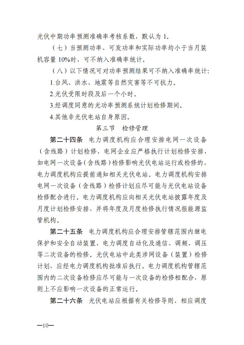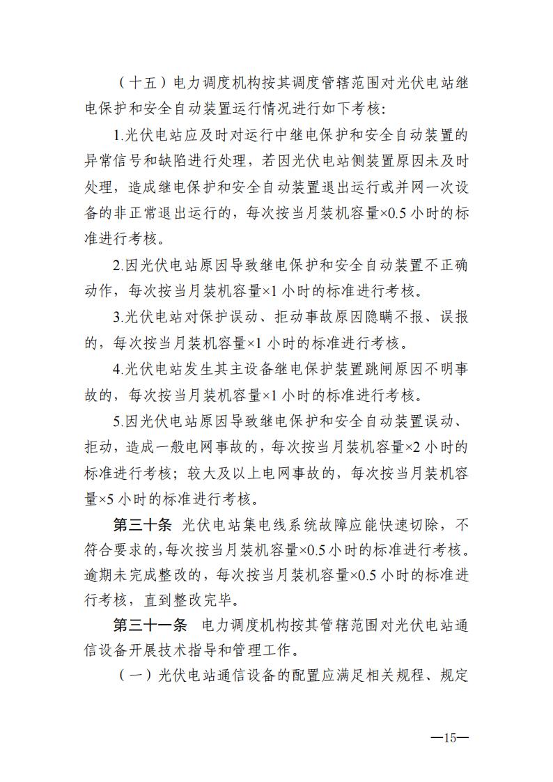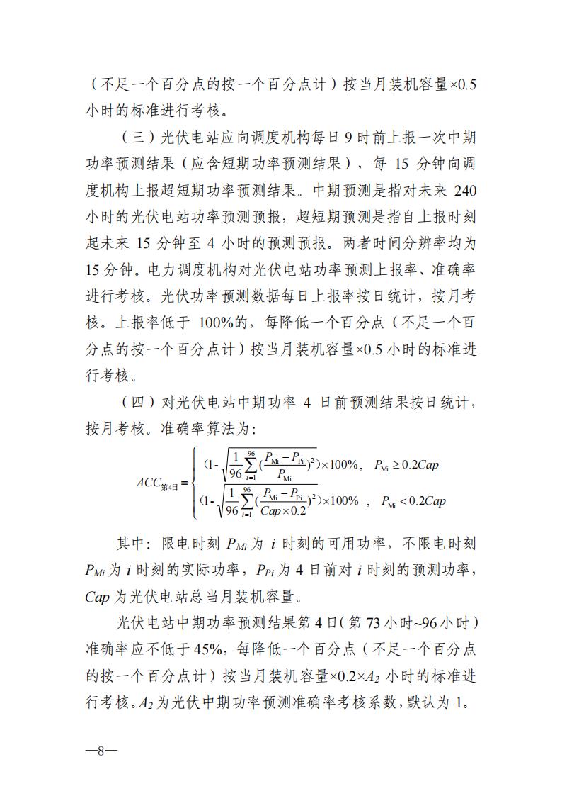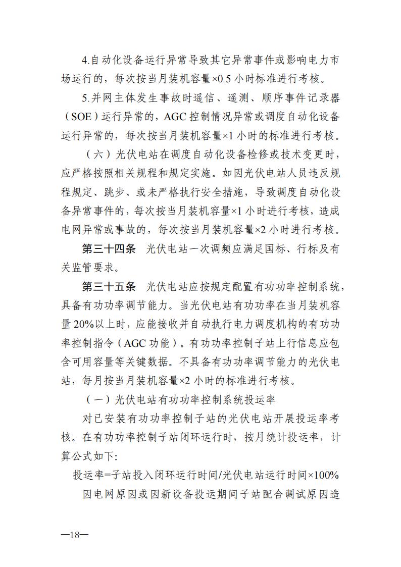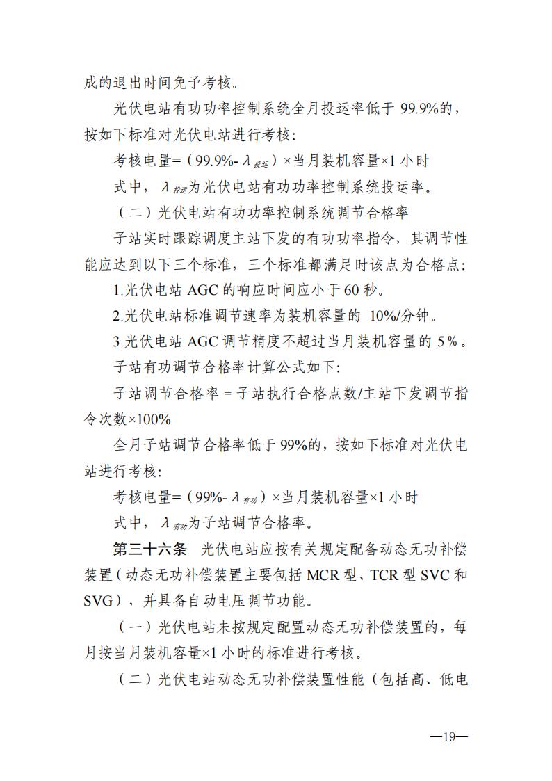 6月13日,國家能源局南方監(jiān)管局印發(fā)《南方區(qū)域光伏發(fā)電并網(wǎng)運(yùn)行及輔助服務(wù)管理實(shí)施細(xì)則》(以下簡稱《實(shí)施細(xì)則》)的通知?!秾?shí)施細(xì)則》指出,光伏電站應(yīng)與電網(wǎng)企業(yè)、電力調(diào)度機(jī)構(gòu)根據(jù)平等互利、協(xié)商一致和確保電力系統(tǒng)安全運(yùn)行的原則,參照國家有關(guān)部門制定的《并網(wǎng)調(diào)度協(xié)議》《購售電合同》等示范文本及時(shí)簽訂并網(wǎng)調(diào)度協(xié)議和購售電合同,無協(xié)議(合同)光伏電站不得并網(wǎng)運(yùn)行。 光伏電站在并網(wǎng)調(diào)度協(xié)議簽訂后1個(gè)月內(nèi),應(yīng)書面向電力調(diào)度機(jī)構(gòu)申報(bào)投產(chǎn)年月,較申報(bào)投產(chǎn)時(shí)間每延遲一月按并網(wǎng)調(diào)度協(xié)議約定的裝機(jī)容量×1小時(shí)的標(biāo)準(zhǔn)進(jìn)行考核。 新建光伏電站自并網(wǎng)容量大于10兆瓦,次月起按本細(xì)則開展考核與補(bǔ)償,未全容量并網(wǎng)前按當(dāng)月實(shí)際裝機(jī)容量開展相關(guān)考核。光伏電站因擴(kuò)建原因被考核,由光伏電站向電力調(diào)度機(jī)構(gòu)申訴并經(jīng)能源監(jiān)管機(jī)構(gòu)同意的,可豁免考核。 光伏電站應(yīng)按要求從規(guī)劃、設(shè)計(jì)、建設(shè)、試驗(yàn)以及運(yùn)行方面做好相關(guān)工作,提升光伏電站并網(wǎng)友好性水平,確保光伏電站安全、高效并網(wǎng)及系統(tǒng)運(yùn)行安全穩(wěn)定。 光伏電站應(yīng)按電力調(diào)度機(jī)構(gòu)的要求及時(shí)報(bào)送運(yùn)行信息,未按要求報(bào)送信息,或虛報(bào)、瞞報(bào)信息,每次按當(dāng)月裝機(jī)容量×1小時(shí)的標(biāo)準(zhǔn)進(jìn)行考核。 原文如下: