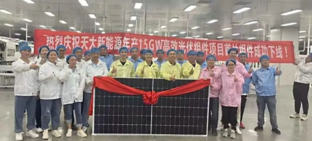 近日,天大新能源15GW高效光伏組件項(xiàng)目一期投產(chǎn)運(yùn)營,第一件光伏組件產(chǎn)品正式下線。據(jù)悉,天大新能源15GW高效光伏組件項(xiàng)目于2022年1月23日開工奠基,總投資超60億元。