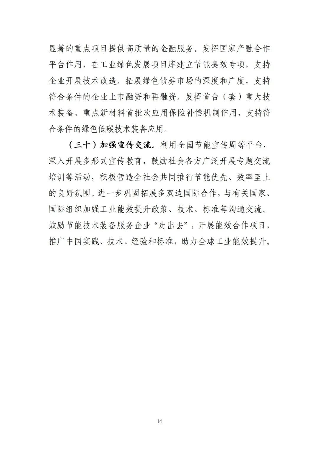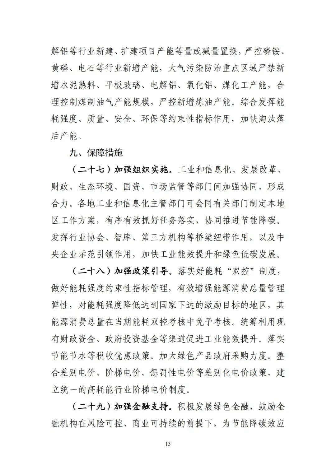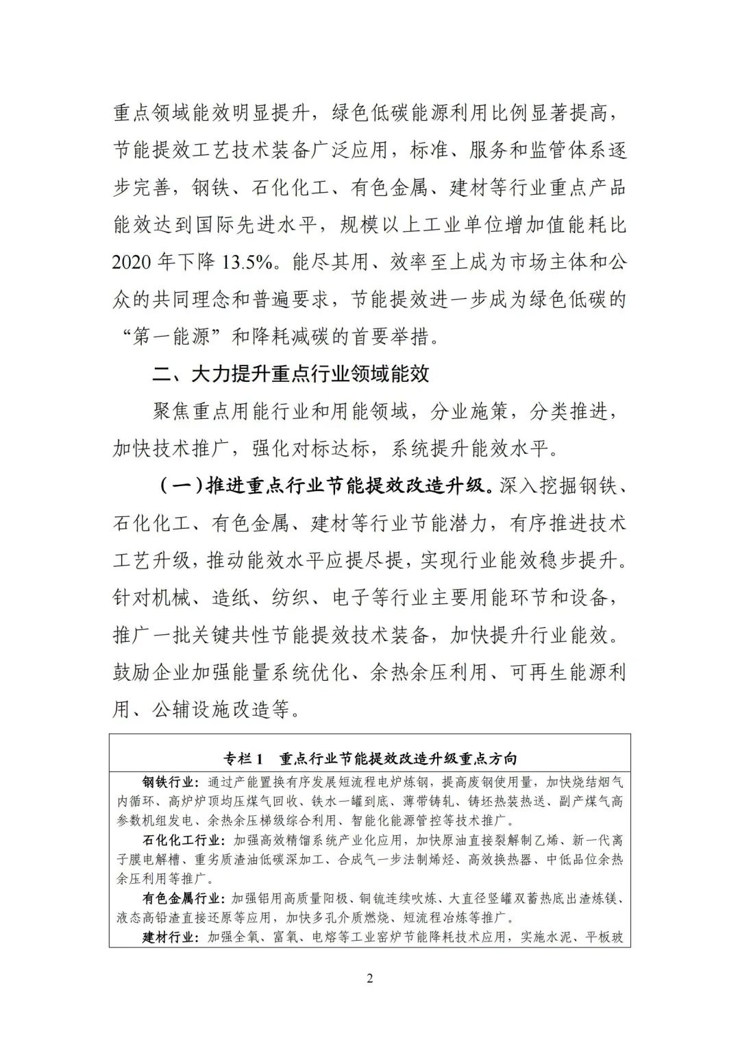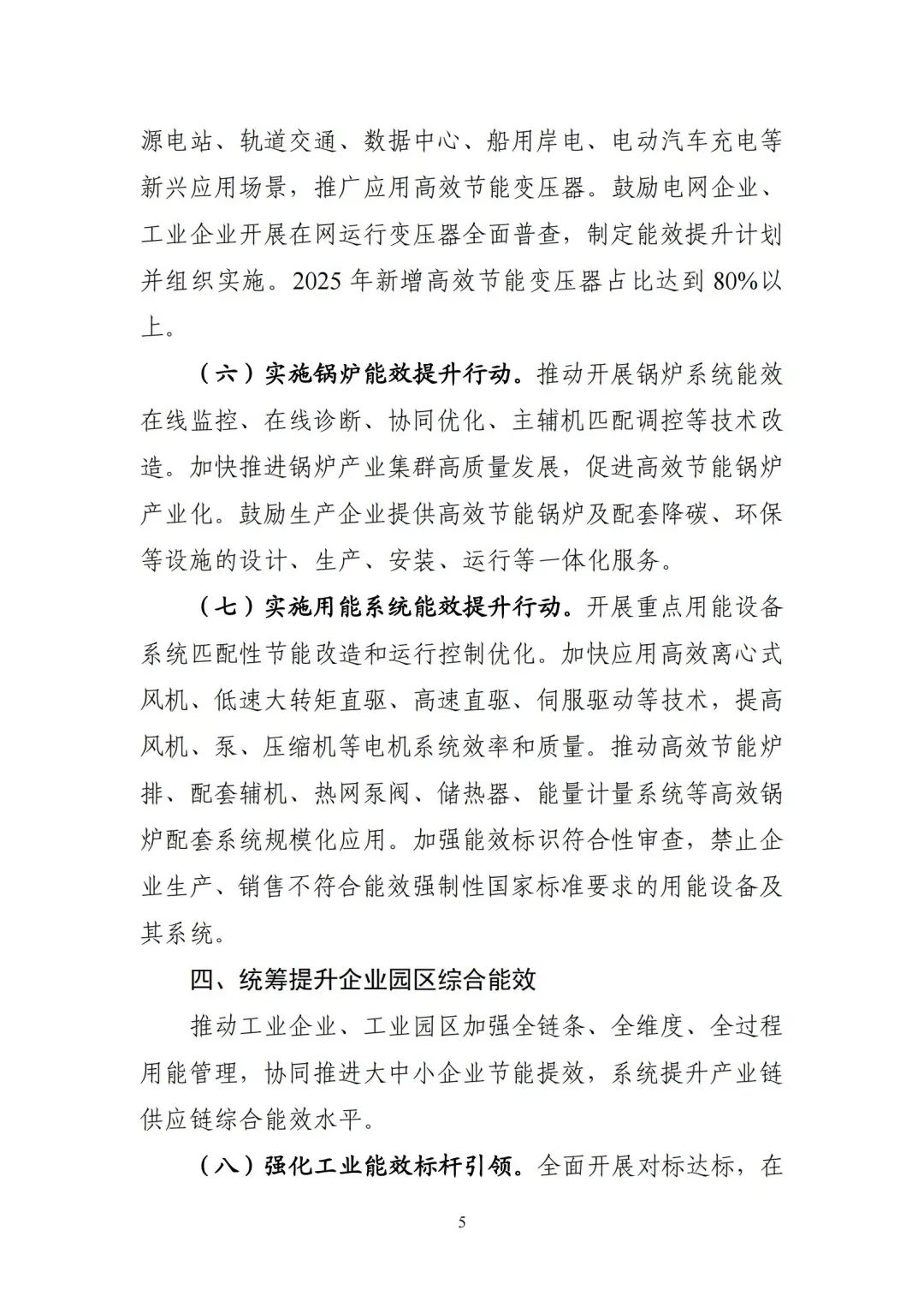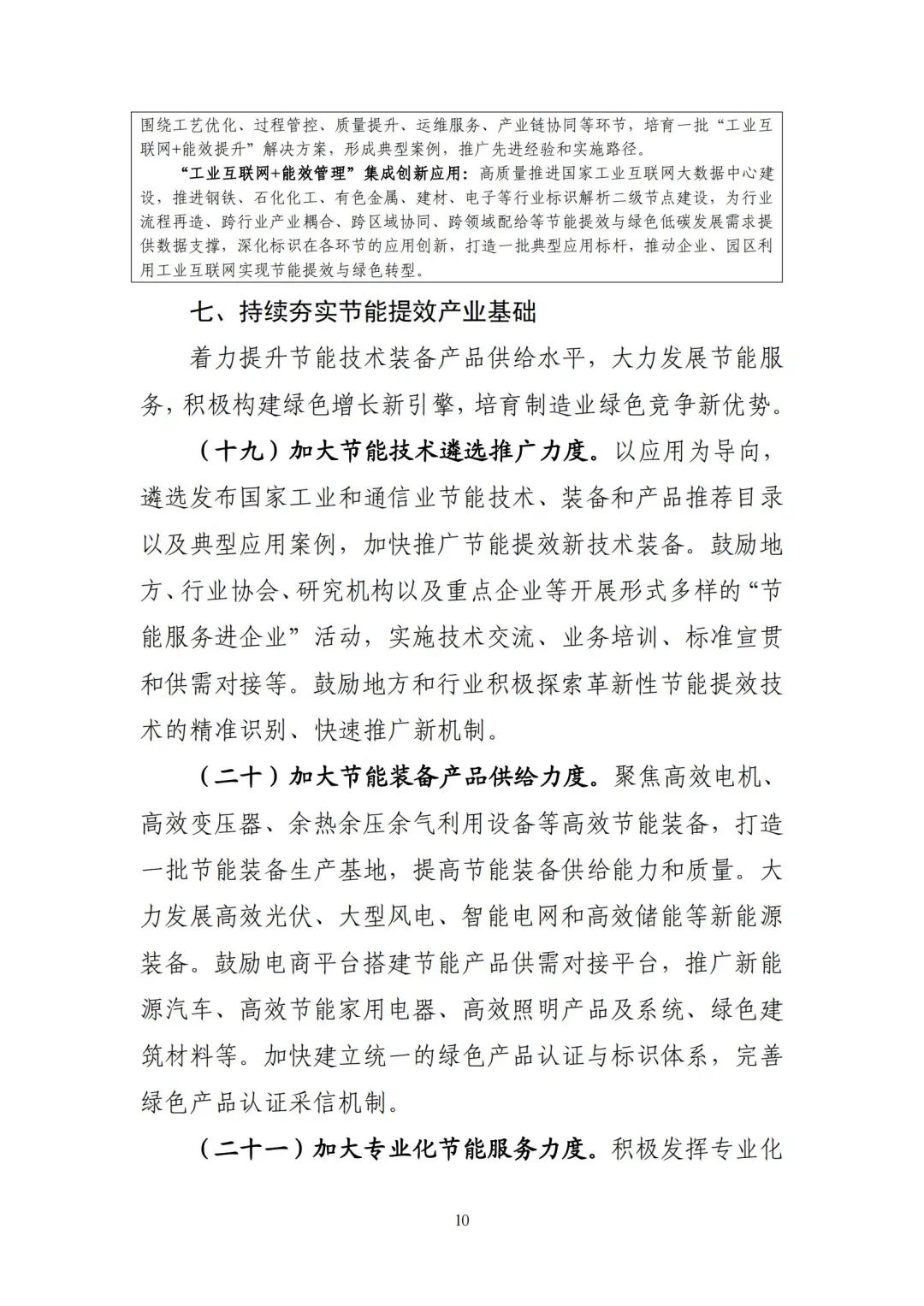 《工業(yè)能效提升行動計劃》解讀 近日,工業(yè)和信息化部、發(fā)展改革委、財政部、生態(tài)環(huán)境部、國資委、市場監(jiān)管總局等六部門聯(lián)合發(fā)布《工業(yè)能效提升行動計劃》(工信部聯(lián)節(jié)〔2022〕76號,以下簡稱《行動計劃》)。為做好《行動計劃》貫徹實施工作,現(xiàn)將有關(guān)內(nèi)容解讀如下: 一、《行動計劃》編制背景 黨中央、國務(wù)院高度重視節(jié)能工作,習(xí)近平總書記在中央財經(jīng)委員會第九次會議上圍繞落實“雙碳”目標(biāo),強(qiáng)調(diào)“要把節(jié)約能源資源放在首位,實行全面節(jié)約戰(zhàn)略”?!吨腥A人民共和國國民經(jīng)濟(jì)和社會發(fā)展第十四個五年規(guī)劃和2035年遠(yuǎn)景目標(biāo)綱要》要求“能源資源配置更加合理、利用效率大幅提高”,提出“堅持節(jié)能優(yōu)先方針,深化工業(yè)、建筑、交通等領(lǐng)域和公共機(jī)構(gòu)節(jié)能,推動5G、大數(shù)據(jù)中心等新興領(lǐng)域能效提升”。中央經(jīng)濟(jì)工作會議強(qiáng)調(diào)“要堅持節(jié)約優(yōu)先,實施全面節(jié)約戰(zhàn)略。在生產(chǎn)領(lǐng)域,推進(jìn)資源全面節(jié)約、集約、循環(huán)利用”。這對工業(yè)節(jié)能提效和綠色低碳發(fā)展提出了新的更高要求。 近年來,我國工業(yè)能效水平不斷提升,規(guī)模以上工業(yè)單位增加值能耗在“十二五”大幅下降基礎(chǔ)上,“十三五”進(jìn)一步下降16%,2021年下降5.6%?!笆奈濉睍r期,支撐制造業(yè)比重保持基本穩(wěn)定,用能需求將剛性增長。同時,工業(yè)節(jié)能提效面臨著用能結(jié)構(gòu)綠色化水平不高、節(jié)能提效技術(shù)創(chuàng)新及裝備推廣存在短板、重點用能行業(yè)節(jié)能挖潛難度日益加大等問題。面對新形勢新要求,亟需加強(qiáng)工業(yè)能效提升的頂層設(shè)計,明確“十四五”時期主要目標(biāo)和重點任務(wù),指導(dǎo)重點行業(yè)領(lǐng)域進(jìn)一步提高能源利用效率,推動優(yōu)化能源資源配置。 二、工業(yè)能效提升的重要意義 推進(jìn)工業(yè)能效提升,是完整、準(zhǔn)確、全面貫徹新發(fā)展理念、實現(xiàn)高質(zhì)量發(fā)展的內(nèi)在要求。我國工業(yè)領(lǐng)域用能企業(yè)數(shù)量多、涉及面廣,加快推進(jìn)工業(yè)節(jié)能提效,促進(jìn)產(chǎn)業(yè)轉(zhuǎn)型升級,有利于提升企業(yè)能源資源利用效率,降低能源成本,提升企業(yè)綠色競爭力;有利于推動重點行業(yè)領(lǐng)域工藝流程、生產(chǎn)設(shè)備更新?lián)Q代,提升行業(yè)綠色低碳發(fā)展水平;有利于推動傳統(tǒng)產(chǎn)業(yè)轉(zhuǎn)型升級,從局部單體節(jié)能提效轉(zhuǎn)向全流程系統(tǒng)發(fā)力,形成跨產(chǎn)業(yè)跨領(lǐng)域耦合提效協(xié)同升級的新模式。 推進(jìn)工業(yè)能效提升,是降低工業(yè)領(lǐng)域碳排放、實現(xiàn)碳達(dá)峰碳中和目標(biāo)的重要途徑。根據(jù)國際能源署的分析,到2050年,能效提升是實現(xiàn)二氧化碳大規(guī)模減排的最主要途徑,其貢獻(xiàn)約為37%,是實現(xiàn)碳減排最重要、最經(jīng)濟(jì)、最直接的路徑。我國工業(yè)能源消費量占全社會能源消費總量的65%左右,提升工業(yè)用能效率,有助于減少化石能源使用,從源頭減少二氧化碳排放。 推進(jìn)工業(yè)能效提升,是培育形成綠色低碳發(fā)展新動能、促進(jìn)工業(yè)經(jīng)濟(jì)增長的有力舉措。當(dāng)前,節(jié)能降碳已經(jīng)成為科技革命和產(chǎn)業(yè)變革的主要方向之一,發(fā)展以技術(shù)、產(chǎn)品、服務(wù)為主要內(nèi)容的節(jié)能產(chǎn)業(yè)大有可為。一方面,超高能效設(shè)備產(chǎn)品、新能源裝備、節(jié)能和新能源汽車等在我國有著廣闊的市場空間和應(yīng)用前景,可不斷形成綠色發(fā)展新動能;另一方面,引導(dǎo)企業(yè)加大節(jié)能提效資金投入、加快實施技術(shù)改造,將推動綠色低碳產(chǎn)業(yè)加快發(fā)展,形成強(qiáng)大國內(nèi)市場。 三、《行動計劃》指導(dǎo)思想和主要目標(biāo) 指導(dǎo)思想是以習(xí)近平新時代中國特色社會主義思想為指導(dǎo),深入貫徹習(xí)近平生態(tài)文明思想,全面貫徹黨的十九大和十九屆歷次全會精神,立足新發(fā)展階段,完整、準(zhǔn)確、全面貫徹新發(fā)展理念,構(gòu)建新發(fā)展格局,堅持系統(tǒng)觀念,堅持節(jié)能優(yōu)先方針,把節(jié)能提效作為最直接、最有效、最經(jīng)濟(jì)的降碳舉措,統(tǒng)籌推進(jìn)能效技術(shù)變革和能效管理革新,統(tǒng)籌提高能效監(jiān)管能力和能效服務(wù)水平,統(tǒng)籌提升重點用能工藝設(shè)備產(chǎn)品效率和全鏈條綜合能效,穩(wěn)妥有序推動工業(yè)節(jié)能從局部單體節(jié)能向全流程系統(tǒng)節(jié)能轉(zhuǎn)變,積極推進(jìn)用能高效化、低碳化、綠色化,為實現(xiàn)工業(yè)碳達(dá)峰碳中和目標(biāo)奠定堅實能效基礎(chǔ)。 主要目標(biāo)是到2025年,重點工業(yè)行業(yè)能效全面提升,數(shù)據(jù)中心等重點領(lǐng)域能效明顯提升,綠色低碳能源利用比例顯著提高,節(jié)能提效工藝技術(shù)裝備廣泛應(yīng)用,標(biāo)準(zhǔn)、服務(wù)和監(jiān)管體系逐步完善,鋼鐵、石化化工、有色金屬、建材等行業(yè)重點產(ch