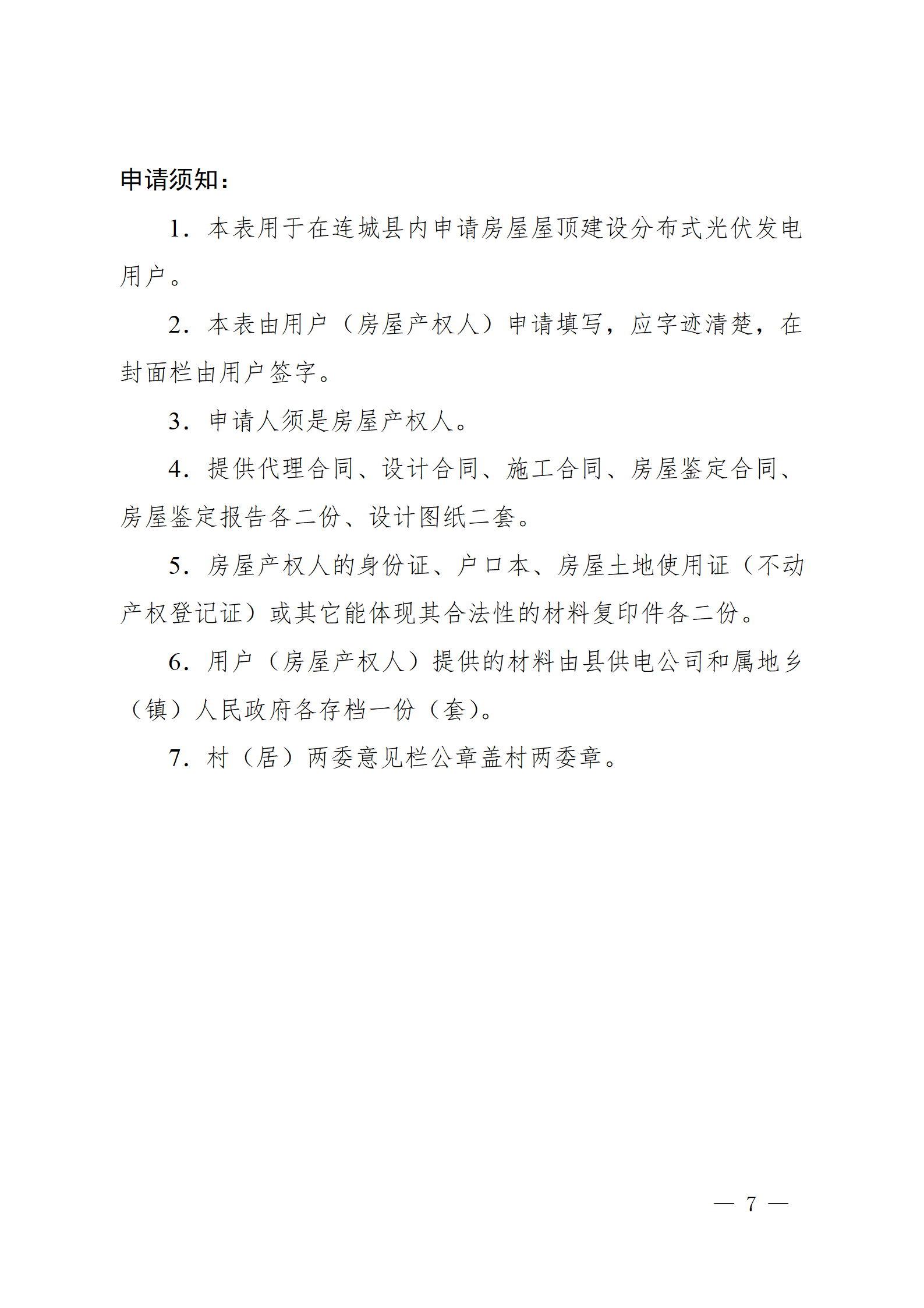 7月5日,福建省龍巖市連城縣人民政府印發(fā)《連城縣安全有序推進(jìn)戶用分布式光伏發(fā)電產(chǎn)業(yè)規(guī)范健康發(fā)展的意見》,該規(guī)范適用于新建、擴(kuò)建或改建的分布式光伏,是固定在建筑物屋頂建設(shè)安裝,以用戶側(cè)自發(fā)自用為主,多余電量上網(wǎng)且在配電網(wǎng)系統(tǒng)平衡調(diào)節(jié)為特征的裝機(jī)容量6兆瓦以下的屋頂分布式光伏(以下簡稱“分布式光伏”)。重點(diǎn)指個人利用自有住宅及在住宅區(qū)域內(nèi)建設(shè)的戶用(自然人)分布式光伏發(fā)電項目。 規(guī)范對連城縣戶用光伏項目建設(shè)規(guī)范、建設(shè)流程進(jìn)行了詳細(xì)規(guī)定,明確嚴(yán)禁以發(fā)展太陽能光伏產(chǎn)業(yè)為由,在樓頂和平臺違法搭建采光房、鋼棚等違法建筑;嚴(yán)禁在安全隱患建筑物、地災(zāi)點(diǎn)房屋和違法建筑物上建設(shè)分布式光伏發(fā)電項目;嚴(yán)禁占用永久基本農(nóng)田和耕地建設(shè)分布式光伏發(fā)電項目;其他不符合規(guī)劃要求的分布式光伏項目不得開工建設(shè)。 辦理流程:提出申請→房屋(建筑物)鑒定→鄉(xiāng)鎮(zhèn)(部門)核驗(yàn)相關(guān)技術(shù)規(guī)范→鄉(xiāng)鎮(zhèn)(部門)審批→組織有資質(zhì)企業(yè)施工→項目監(jiān)督→竣工驗(yàn)收→登記備案(國網(wǎng)供電公司)。 本意見自發(fā)布之日起施行,有效期二年。 詳情如下: 連城縣人民政府辦公室關(guān)于印發(fā)連城縣安全有序推進(jìn)戶用分布式光伏發(fā)電產(chǎn)業(yè)規(guī)范健康發(fā)展的意見的通知 各鄉(xiāng)(鎮(zhèn))人民政府,縣直各單位: 經(jīng)縣委、縣政府研究,現(xiàn)將《連城縣安全有序推進(jìn)戶用分布式光伏發(fā)電產(chǎn)業(yè)規(guī)范健康發(fā)展的意見》印發(fā)給你們,請認(rèn)真抓好落實(shí)。 連城縣人民政府辦公室 2022年7月1日 (此件主動公開) 連城縣安全有序推進(jìn)戶用分布式光伏發(fā)電產(chǎn)業(yè)規(guī)范健康發(fā)展的意見 為進(jìn)一步推進(jìn)我縣戶用分布式光伏發(fā)電產(chǎn)業(yè)安全、有序、規(guī)范、健康發(fā)展,結(jié)合本縣實(shí)際,特制定本意見。 一、指導(dǎo)思想 以習(xí)近平新時代中國特色社會主義思想為指引,深入貫徹落實(shí)“碳達(dá)峰、碳中和”國家重大戰(zhàn)略部署,推進(jìn)戶用分布式光伏發(fā)電產(chǎn)業(yè)的規(guī)范健康發(fā)展。同時,結(jié)合全國、全省、全市關(guān)于房屋安全專項整治的部署和要求,強(qiáng)化戶用分布式光伏發(fā)電產(chǎn)業(yè)的安全、規(guī)范發(fā)展,確保建筑安全,保障人民生命財產(chǎn)安全。 二、規(guī)范措施 (一)基本要求 1.本規(guī)范適用于新建、擴(kuò)建或改建的分布式光伏,是固定在建筑物屋頂建設(shè)安裝,以用戶側(cè)自發(fā)自用為主,多余電量上網(wǎng)且在配電網(wǎng)系統(tǒng)平衡調(diào)節(jié)為特征的裝機(jī)容量6兆瓦以下的屋頂分布式光伏(以下簡稱“分布式光伏”)。重點(diǎn)指個人利用自有住宅及在住宅區(qū)域內(nèi)建設(shè)的戶用(自然人)分布式光伏發(fā)電項目。 (1)分布式光伏應(yīng)符合國家能源和區(qū)域的發(fā)展戰(zhàn)略; (2)分布式光伏設(shè)計使用年限不應(yīng)小于20年; (3)分布式光伏電源不應(yīng)作為消防應(yīng)急電源; (4)分布式光伏設(shè)計、建設(shè)、驗(yàn)收、維護(hù)應(yīng)建立相應(yīng)的檔案; (5)分布式光伏發(fā)電項目所依托的建筑物和設(shè)施應(yīng)具有合法性。戶用分布式光伏所依托的建筑物應(yīng)具有土地證(不動產(chǎn)登記證)或其他能體現(xiàn)其合法性的材料,并且光伏發(fā)電設(shè)施應(yīng)架構(gòu)穩(wěn)定,不影響所在房屋(建筑物)的承載能力及周邊的規(guī)劃設(shè)計、建筑風(fēng)貌以及次生安全等;項目單位與項目所依托的建筑物、場地及設(shè)施所有人非同一主體時,項目單位應(yīng)與所有人簽訂建筑物、場地及設(shè)施的使用或租賃協(xié)議。 (6)分布式光伏發(fā)電項目的設(shè)計和安裝應(yīng)符合有關(guān)管理規(guī)定、設(shè)備標(biāo)準(zhǔn)、建筑工程規(guī)范和安全規(guī)范等要求,承擔(dān)項目設(shè)計、安裝和監(jiān)理的單位,應(yīng)具有國家規(guī)定的相應(yīng)資質(zhì)。分布式光伏發(fā)電項目采用的光伏電池組件、逆變器等設(shè)備應(yīng)通過符合國家規(guī)定的認(rèn)可機(jī)構(gòu)的檢測認(rèn)證,符合相關(guān)接入電網(wǎng)的技術(shù)要求。 (7)分布式光伏發(fā)電項目,必須履行備案、設(shè)計、施工和驗(yàn)收程序。戶用分布式光伏發(fā)電項目驗(yàn)收合格、并網(wǎng)接入后,由縣供電公司直接登記備案。 2.工商業(yè)(非自然人)分布式光伏參照執(zhí)行。工商業(yè)分布式光伏是指在工廠廠房、產(chǎn)業(yè)園區(qū)、商業(yè)樓宇、公共建筑等固定建筑物屋頂建設(shè)各類分布式光伏。 (二)規(guī)范要點(diǎn) 1.房屋建筑安全規(guī)范。戶用分布式光伏發(fā)電項目所依托的建筑物(房屋)結(jié)構(gòu)應(yīng)進(jìn)行荷載分析和驗(yàn)算,應(yīng)充分考慮防風(fēng)、防臺和安全承載等因素,滿足分布式光伏發(fā)電項目建設(shè)的安全性和可靠性,需提供具有資質(zhì)房屋檢測鑒定機(jī)構(gòu)的房屋可靠性鑒定